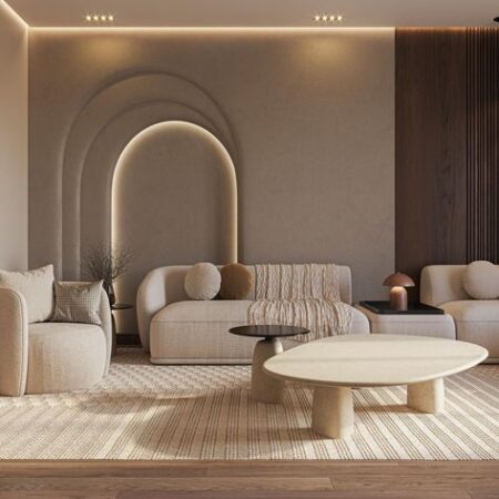 Luxury Curved Modern Sofa Set – Beige Fabric