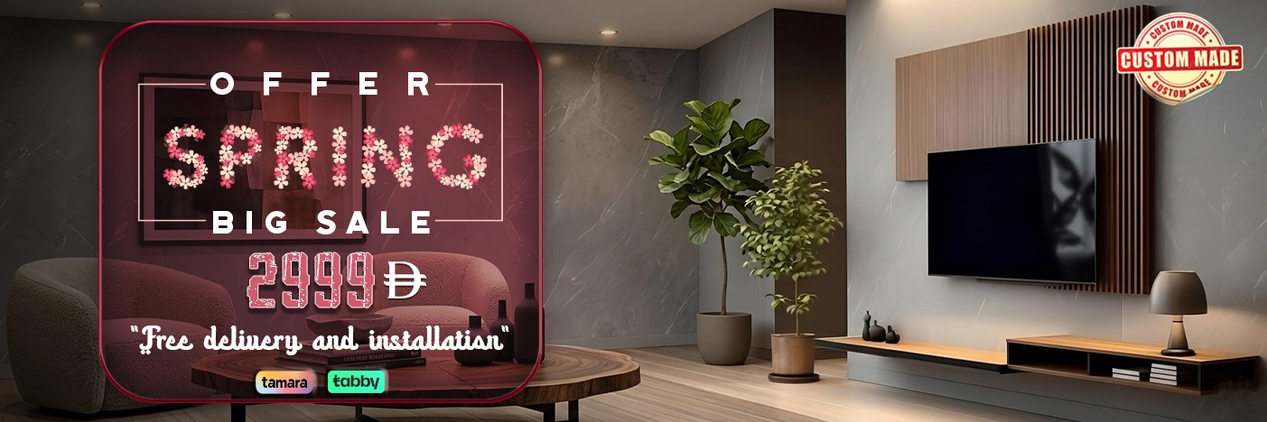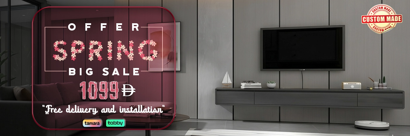 Choose from modern and luxury TV unit designs crafted with durable materials and expert workmanship, space-saving solutions ideal for apartments and villas, exclusive Spring 2026 Special Furniture Sale in Dubai discounts at DH Furniture, and fast delivery across Dubai and the UAE.