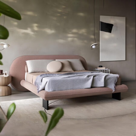 Blush Modern Curved Upholstered Bed