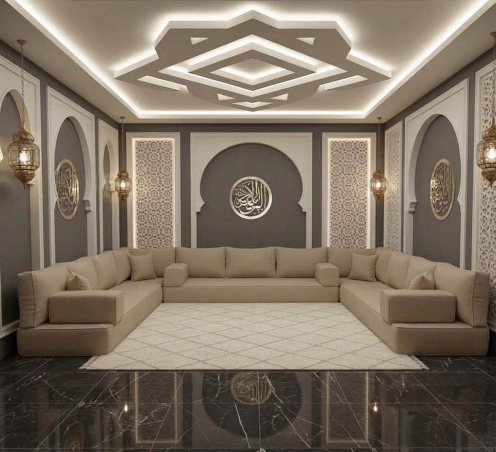 The Baraka Grand Majlis Sofa Set by DH Furniture is a perfect blend of traditional Arabic majlis design and modern luxury comfort. Created to elevate formal gathering spaces, this sofa set features a spacious U-shaped seating arrangement that encourages conversation, hospitality, and relaxation.