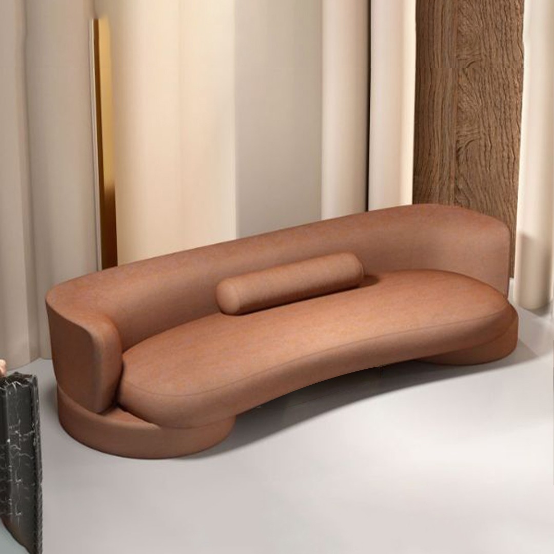 Upholstered in premium soft-touch fabric . The sofa rests on a discreet sculpted base that enhances stability while preserving a clean, seamless profile. Ideal for luxury living rooms, boutique lounges, and statement interiors, the Calyra Arc Soft Signature Sofa embodies understated sophistication and modern artistry.