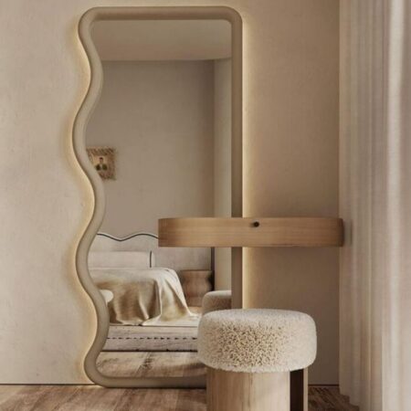 Make a bold style statement with this Dressing Table featuring an Asymmetric Mirror. Its modern, artistic design brings a unique touch to any bedroom or dressing area, perfect for those who love contemporary aesthetics.