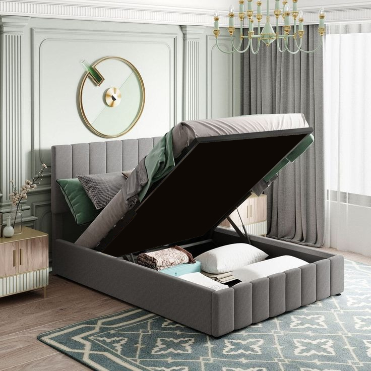 Upgrade your bedroom with the VertiStore Hydraulic Storage Bed, designed with a sleek vertical padded headboard and a hydraulic lift mechanism for easy access to generous under-bed storage. Combining modern style with practical functionality, this bed is perfect for those seeking comfort and smart space solutions.